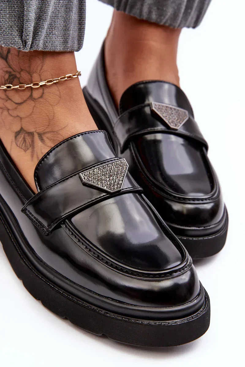 Klasické dámské boty, ideální pro podzimní styling! Vyrobeno z eko kůže. Nasazené na plochém podpatku. Na předním pásku je malá ozdoba. Zaoblené prsty. Měkká stélka z ekokůže zajišťuje pohodlí při používání. Rozhodně byste je měli mít! Při výběru velikosti se řiďte tabulkou velikostí.