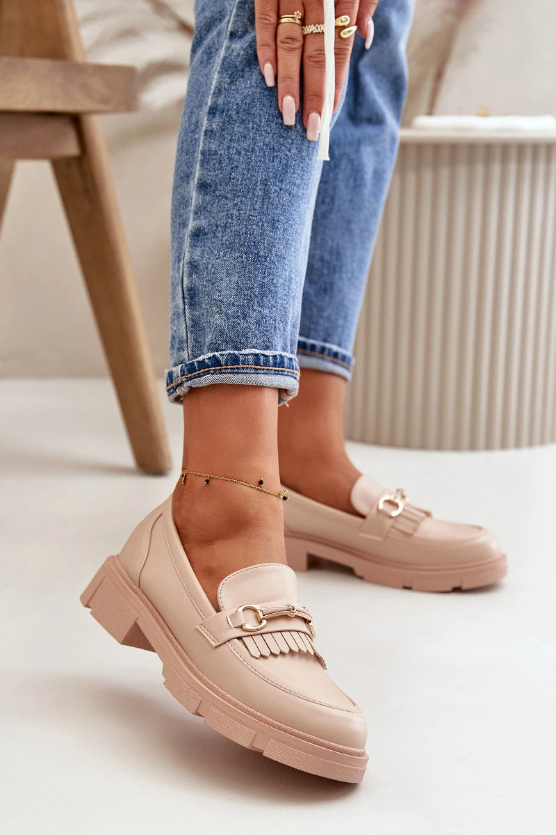 Dámské Mokasíny S Dekorací Eko Kůže Béžové Tialorae