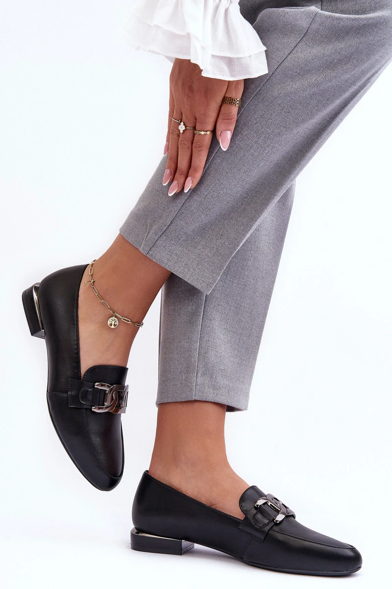 Mokasíny dámské vyrobené z ekologické kůže. Osazené na nízkém podpatku s zrcadlovým prvkem. Špička je zaoblená. Vložka z přírodní kůže zajistí pohodlí při nošení. Na přední straně je ozdoba z umělého materiálu. Patní část je zpevněná. Při výběru velikosti se řiďte tabulkou velikostí.