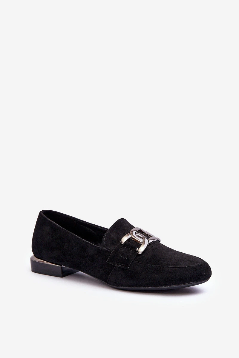 Mokasíny dámské vyrobené z ekologického semiše. Osazené na nízkém podpatku se zrcadlovým prvkem. Špičky jsou zaoblené. Vložka z přírodní kůže zajistí pohodlí při používání. Na přední straně je ozdoba z umělého materiálu. Špička je zesílená. Při výběru velikosti se řiďte tabulkou velikostí.