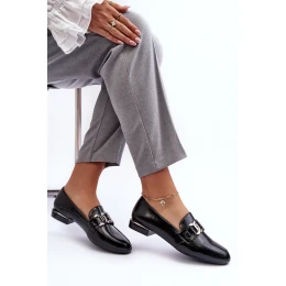 Mokasíny dámské vyrobené z ekologické kůže. Osazené na nízkém podpatku s zrcadlovým prvkem. Špička je zaoblená. Vložka z přírodní kůže zajistí pohodlí při nošení. Na přední straně je ozdoba z umělého materiálu. Patní část je zpevněná. Při výběru velikosti se řiďte tabulkou velikostí.