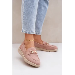Dámské mokasíny s perforací a zlatým detailem a jutovým pletením růžové Lainer