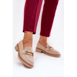 Dámské mokasíny s pletením a zlatým detailem béžové Seffolia