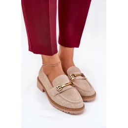 Dámské mokasíny s pletením a zlatým detailem Seffolia – béžové