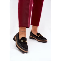 Dámské Mokasíny S Pletením A Zlatým Detelem Černé Seffolia