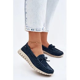 Dámské mokasíny z přírodního semiše s mašlí Vinceza 95401 tmavě modré