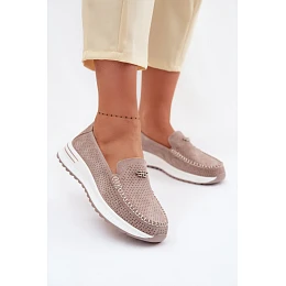 Dámské mokasíny z přírodního semiše tmavě béžové Demela