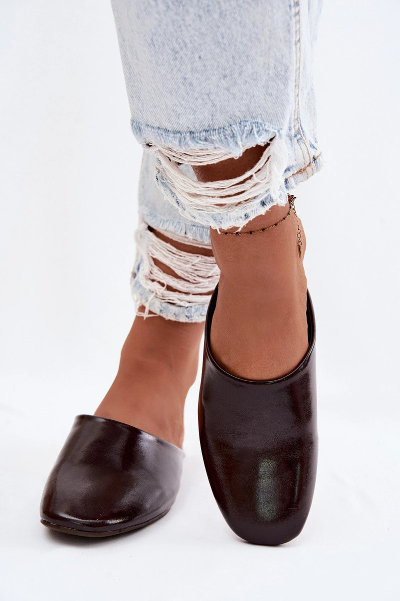 Dámské Mules z Umělé Kůže Ploché Čokoládové Romelle