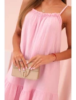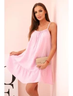 Dámské mušelínové šaty s ramínky a volánem bonbónově růžová