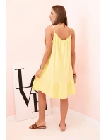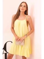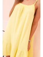 Dámské mušelínové šaty s ramínky a volánem žlutý