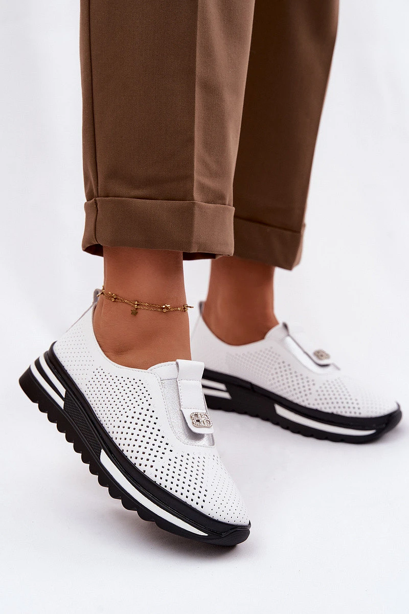 Dámské nazouvací polobotky z pravé kůže S.Barski LR61-7092 Bílá
