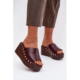Dámské nazouváky na platformě a na podpatku s zlatými přezkami Bordó Farinelle