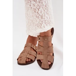 Dámské nazouváky na ploché podrážce s pásky a zlatou sponou Bežové Elzora