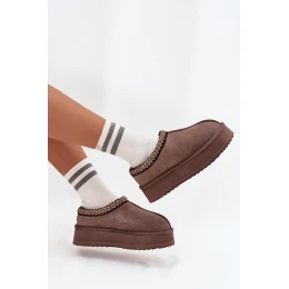 Dámské nízké semišové sněhule Vinceza s výšivkou na platformě – hnědé
