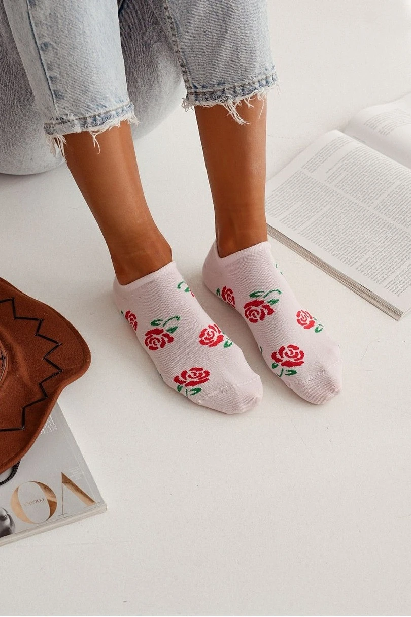 Dámské ponožky Milena 1146.079 s elegantním vzorem růží jsou vynikající volbou pro ženy, které ocení jemný, ženský styl a každodenní pohodlí. Jemný květinový motiv dodá šarm každému oblečení a nízký střih je ideální pro tenisky a letní obuv. Vysoký obsah bavlny zajišťuje prodyšnost a celodenní pohodlí, zatímco elastan a polyamid zajišťují pružnost a odolnost. Ponožky se dokonale přizpůsobí chodidlu a udrží si svůj tvar i po mnoha vypráních.