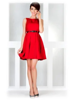 Dámské společenské šaty FOLD se sklady a páskem středně dlouhé červené - Červená - Numoco