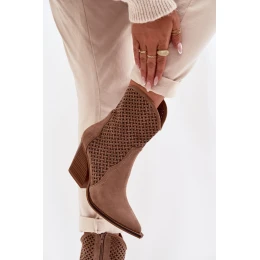 Dámské kotníkové boty vyrobené z eko semiše jsou stylovou volbou na přechodné období. Otevřená část svršku dodává lehkost a moderní vzhled, zatímco tenké, prodloužené špičky zvýrazňují linii nohy. Stabilní, zkrácený podpatek zajišťuje pohodlí při každodenním nošení, a zip usnadňuje obouvání a svlékání. Tento univerzální model se skvěle hodí jak k běžným, tak elegantnějším outfitům. Při výběru velikosti se řiďte tabulkou velikostí.