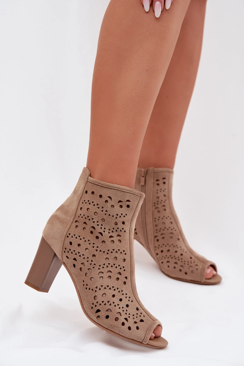 Dámské otevřené kotníkové boty na podpatku s výřezem béžové Ilavette