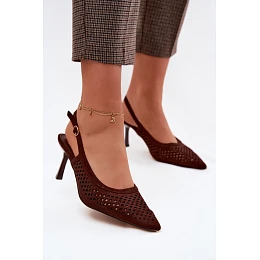 Dámské otevřené sandály na podpatku z imitace semiše Čokoládové Velvia