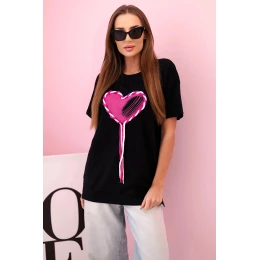 Dámské bavlněné oversize tričko srdcem a třásněmi černá
