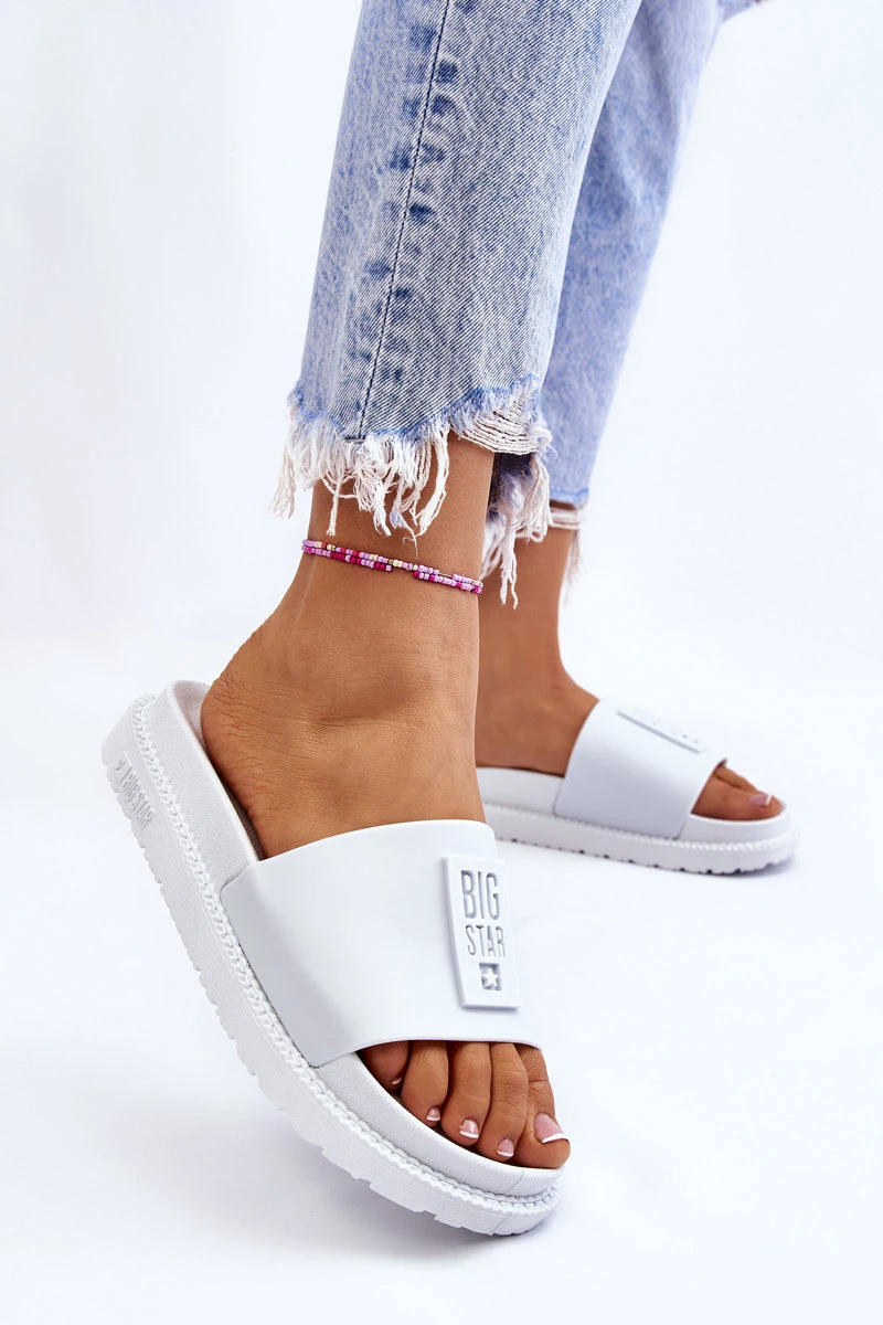Pantofle Big Star budou fungovat jak venku, tak místo pantoflí po domě. Jsou upevněny na masivní platformě z pryžového materiálu. Profilovaná stélka zajistí pohodlí při používání. Reliéfní logo Big Star na přední straně a vsadce. Skvělý model, který byste neměli mít ve svém šatníku. Tento model využijete v mnoha situacích: při návštěvě bazénu nebo při procházkách po písečné pláži. Nezapomeňte se také podívat na další modely klapek Big Star dostupné v naší nabídce!