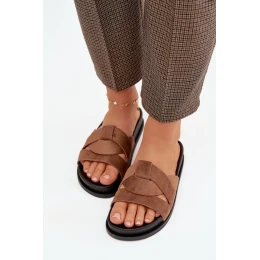 Dámské pantofle Eko semiš s pásky hnědé Marivessa