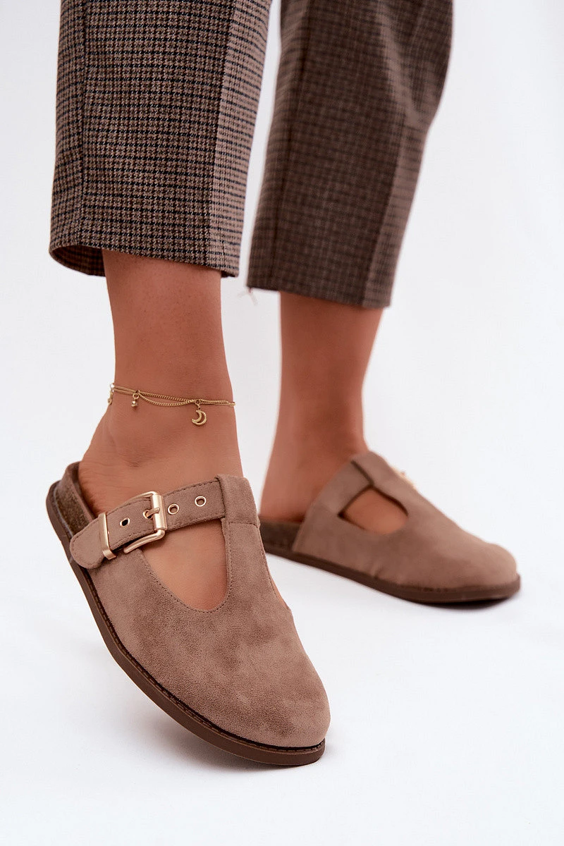 Dámské pantofle Mule z imitace semiše tmavě béžové Melvia