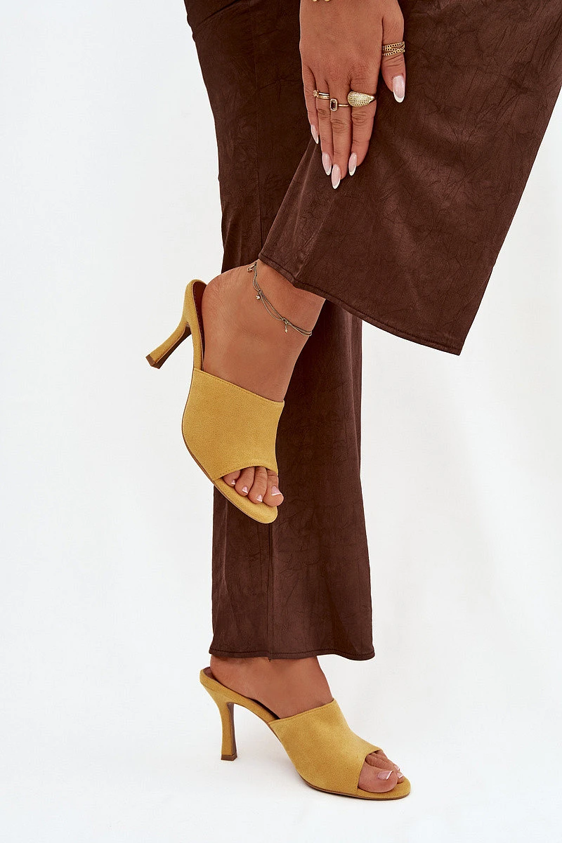Dámské pantofle na jehle z eko semiše žluté Isolia