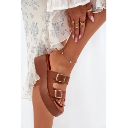 Dámské Pantofle Na Klínku A Platformě S Přezkami Camel Nitarelia