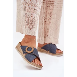Dámské Pantofle Na Klínu S Dekorativní Přezkou Inblu RV000012 Modré