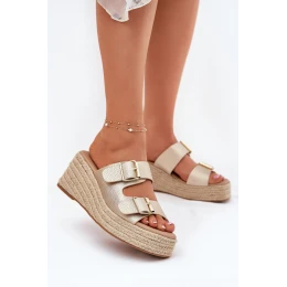 Dámské Pantofle Na Klínu S Pletením A Přezkami Zlaté Pasinea