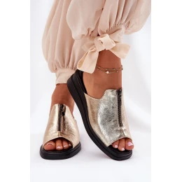 Dámské Pantofle Na Klínu Se Zipem Zlaté Irriva