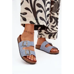 Dámské Pantofle Na Korečkové Platformě S Přezkami Světle Džínové Vesina