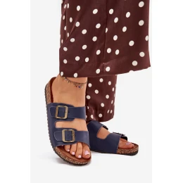 Dámské pantofle na korkové platformě s přezkami – tmavě modré