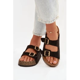 Dámské pantofle na korkové platformě jsou módní a pohodlnou volbou na teplé dny. Vyrobené z eko semiše, vypadají stylově a příjemně se přizpůsobují noze. Dva pásky se zlatými přezkami dodávají celku elegantní charakter a zdůrazňují aktuální trendy. Model se skvěle hodí do letních stylizací, spojující pohodlí s módním vzhledem. Při výběru velikosti se řiďte tabulkou velikostí.