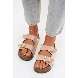 Dámské pantofle na korkové platformě se zlatými sponami světle béžové Tovessa