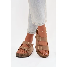 Dámské pantofle na korkové platformě se zlatými sponami tmavě béžové Tovessa