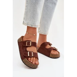 Dámské pantofle na korkové platformě jsou módní a pohodlnou volbou na teplé dny. Vyrobené z eko semiše, vypadají stylově a příjemně se přizpůsobují noze. Dva pásky se zlatými přezkami dodávají celku elegantní charakter a zdůrazňují aktuální trendy. Model se skvěle hodí do letních stylizací, spojující pohodlí s módním vzhledem. Při výběru velikosti se řiďte tabulkou velikostí.