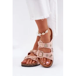 Dámské pantofle na korkové podrážce s sponami a ozdobami světle růžové Efadelis