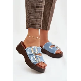 Dámské pantofle na platformě 100-486 Jeans modrá s černou - Joalice Paris