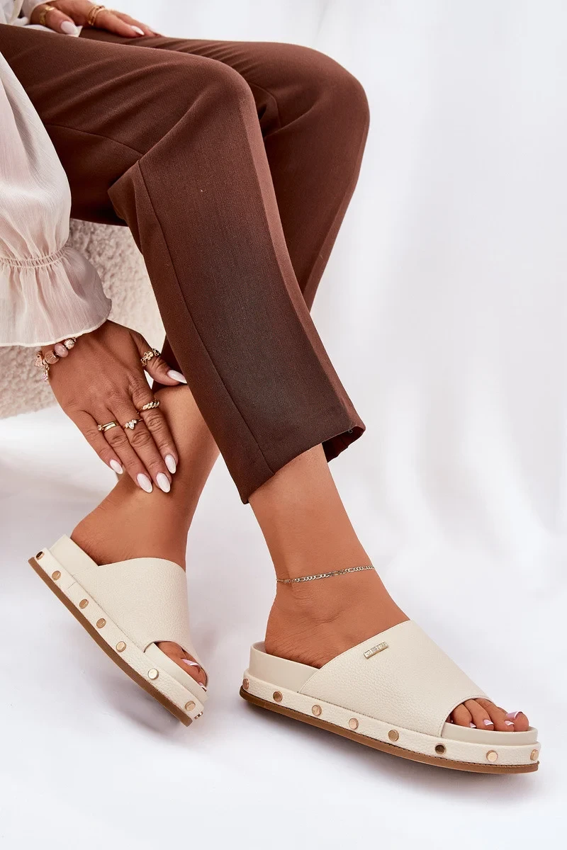 Dámské pantofle na platformě s cvočky Big Star – béžové