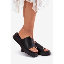 Dámské Pantofle Na Platformě S Dekorativním Detalem Černé Linosea