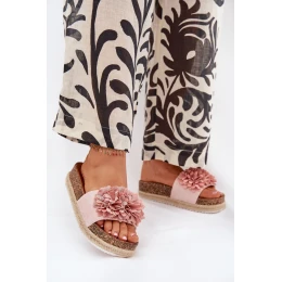 Dámské pantofle na platformě s ozdobnými květinami – růžové