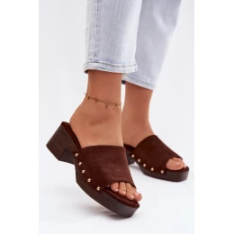 Dámské nazouváky vyrobené z ekologické semišové kůže jsou stylovým tipem pro ženy, které mají rády módní akcenty. Model na stabilním klockovém podpatku a platformě zaručuje pohodlí a jistotu kroku. Měkká vložka se stará o komfort nošení a zlaté nýty po stranách dodávají celku výrazný charakter. Tyto nazouváky se skvěle hodí jak do každodenních, tak i do elegantnějších letních outfitů. Při výběru velikosti se řiďte tabulkou velikostí.