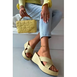 Dámské pantofle na platformě z ekocrézu žluté Calorine