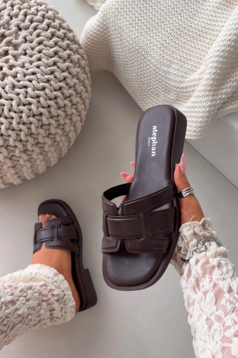 Dámské pantofle na ploché podrážce čokoládové Lorania