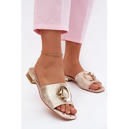 Dámské pantofle na ploché podrážce s ozdobou KV61-6025 Zlaté