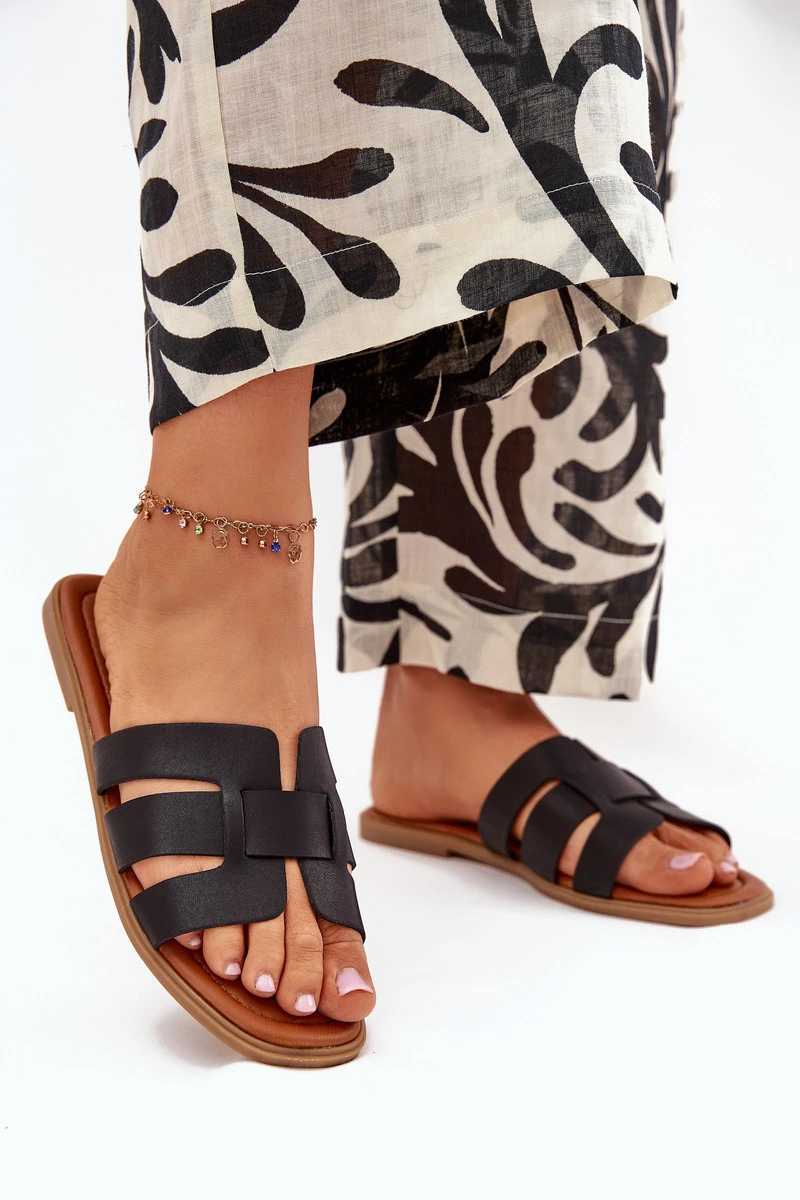 Dámské Pantofle Na Plochém Podpatku Černé Mirona