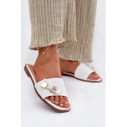 Dámské Pantofle Na Plochém Podpatku S Mašlí Bílé Sallariela