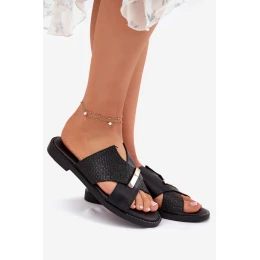 Dámské Pantofle Na Plochém Podpatku S Ozdobným Detalem Vinceza 17385 Černé